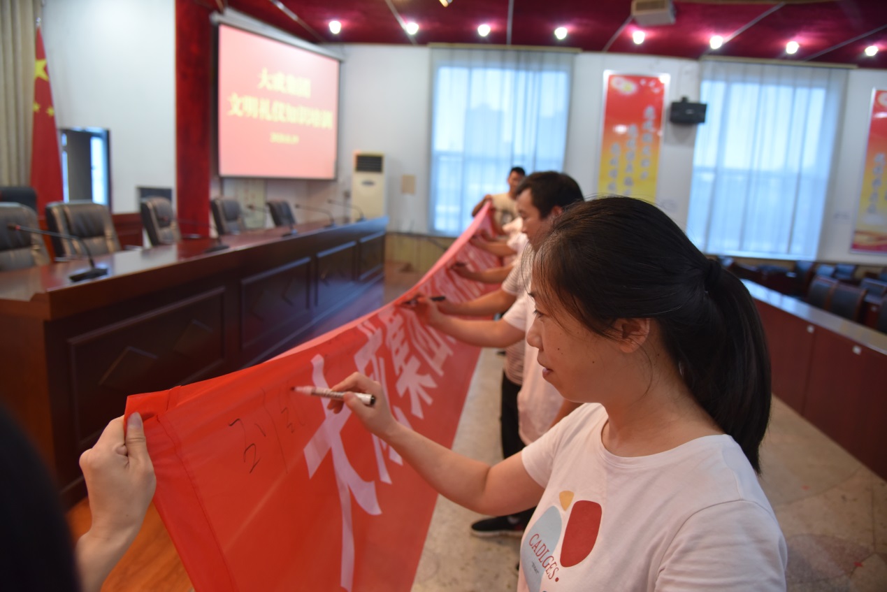 培訓結(jié)束后,公司又舉行了爭做文明有禮大成人承諾簽名活動。