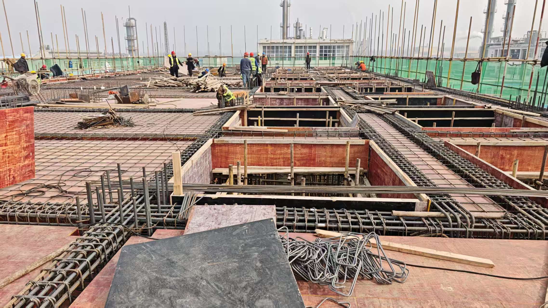 結(jié)晶精餾主體施工穩(wěn)步推進(jìn),二層鋼筋綁扎完成50%。作業(yè)人員嚴(yán)把鋼筋下料、綁扎、間距控制等關(guān)鍵工序,嚴(yán)格執(zhí)行技術(shù)交底與質(zhì)量復(fù)核制度,確保鋼筋綁扎的牢固度與精準(zhǔn)度,目前現(xiàn)場(chǎng)施工秩序井然,為后續(xù)模板支護(hù)、混凝土澆筑工作順利開展創(chuàng)造了有利條件。