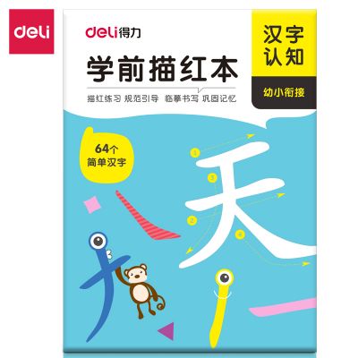 得力75310學前描紅本(筆畫偏旁)(漢字認知)(20以內加減法)(漢語拼音)(數字認知) 練字本 練字帖