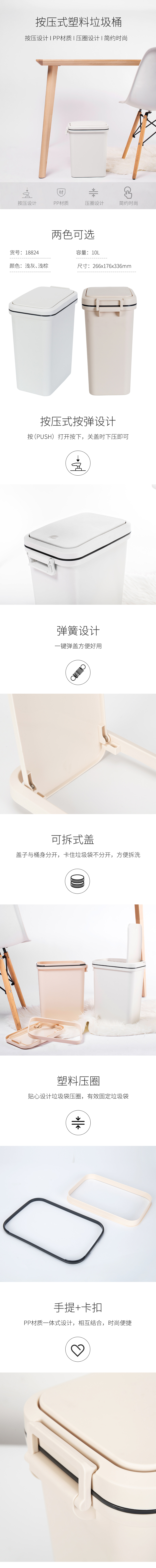 得力18824 塑料按壓式垃圾桶廢紙簍PP材質(zhì)辦公家用環(huán)保