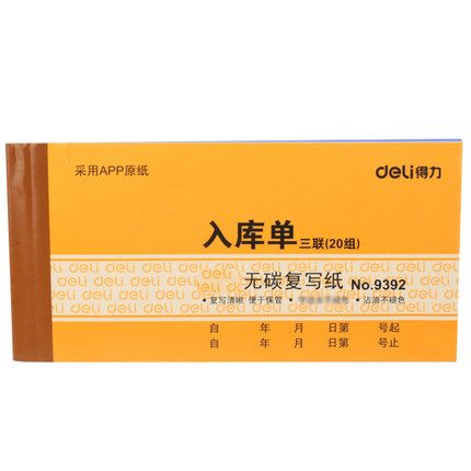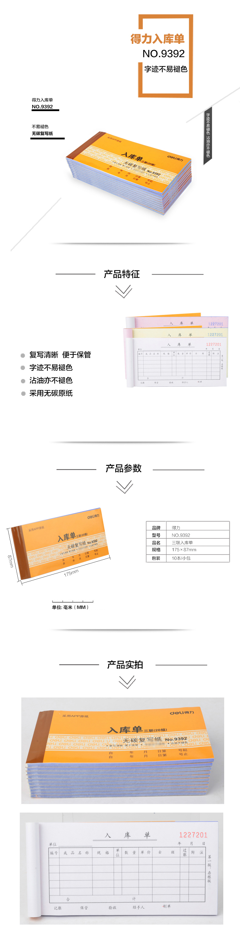 得力入庫單9392辦公財務用三聯入庫單單據票據20組清晰持久