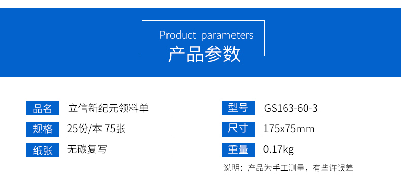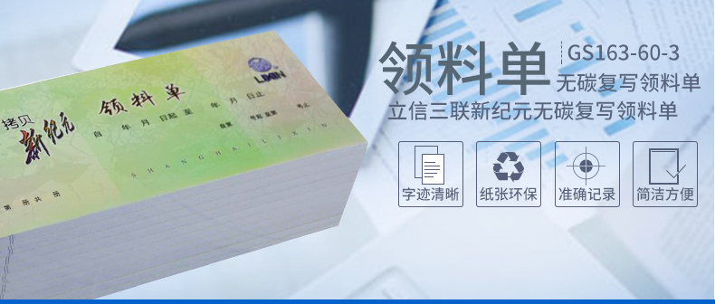 立信GS163-60-3 三聯 60K 新紀元無碳復寫領料單