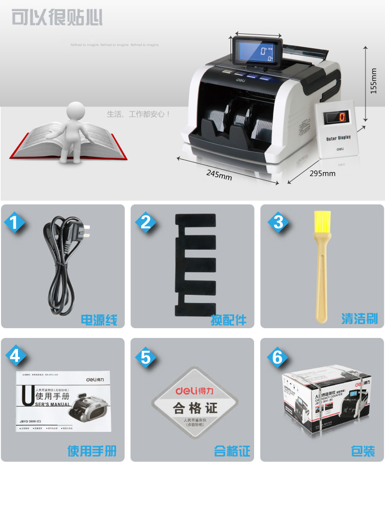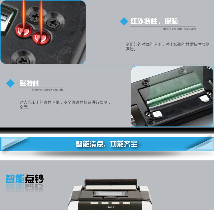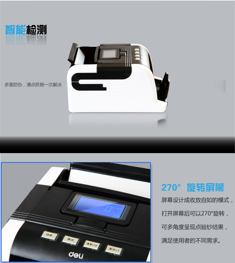得力文具3911全智能點鈔機 銀行專用點鈔機驗鈔機顯示屏270度旋轉