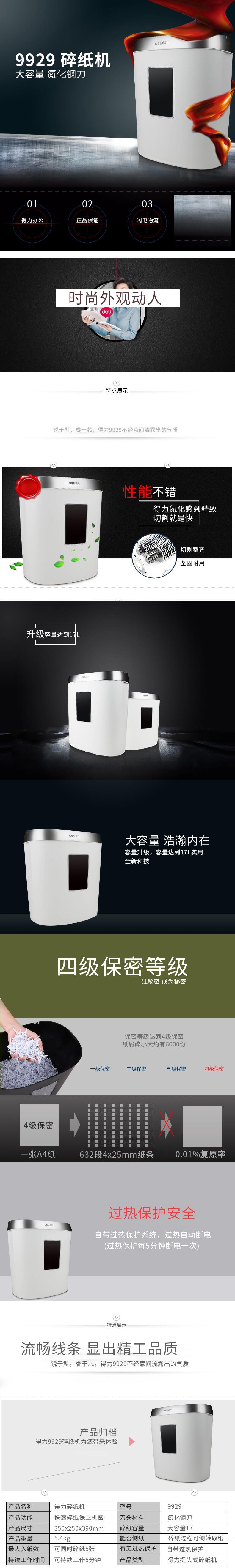 得力9929碎紙機辦公家用電動 大功率4級保密迷你粉碎機碎紙機