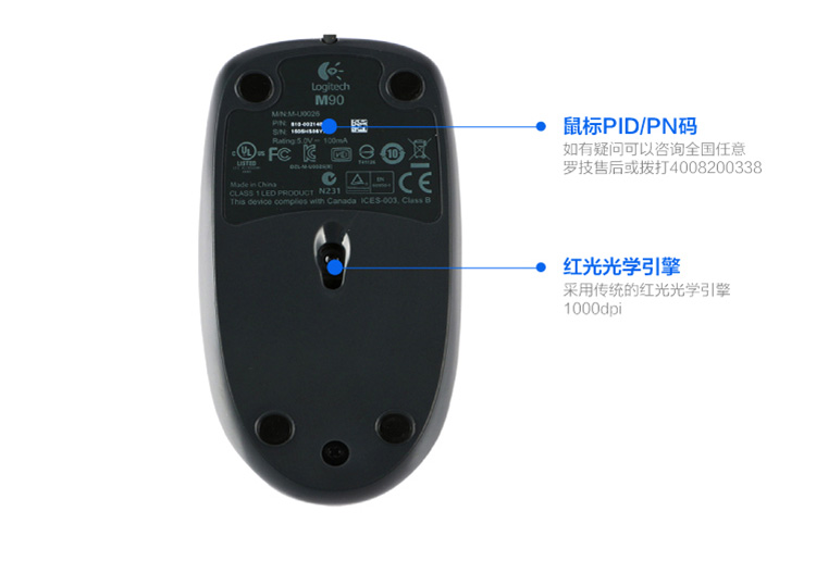 羅技M90有線光電鼠標(biāo)USB電腦家用辦公光電鼠標(biāo)