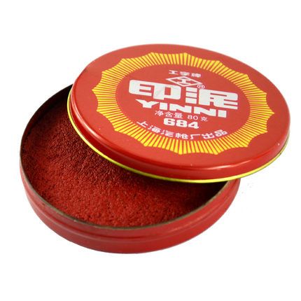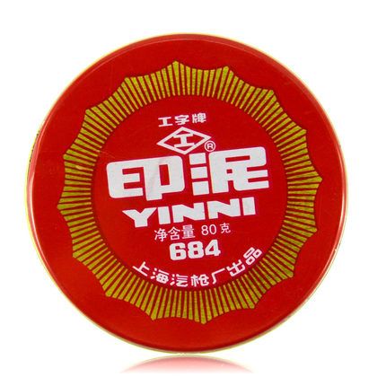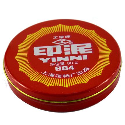 上海工字牌684泥狀印泥 紅色泥臺泥巴狀 鐵殼圓形中號直徑約82mm