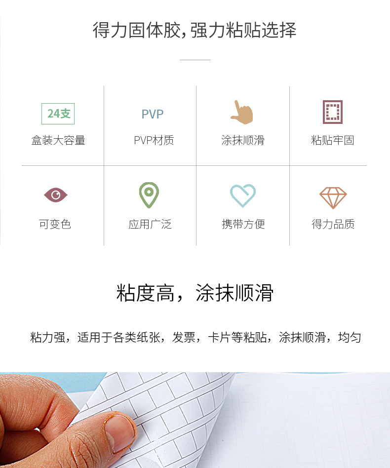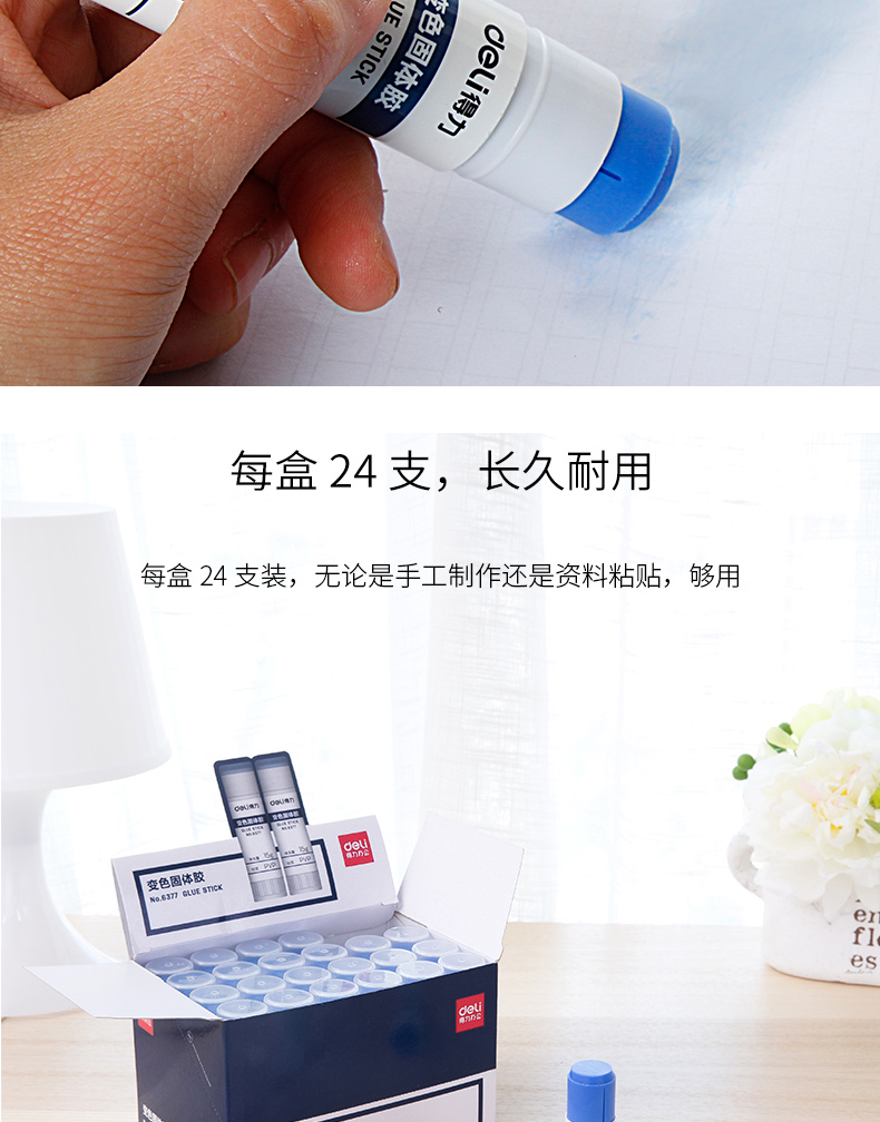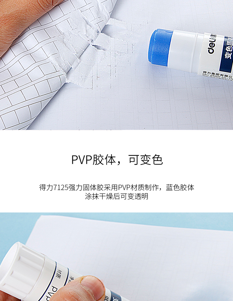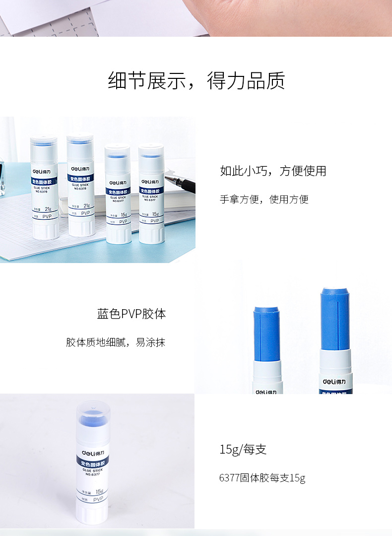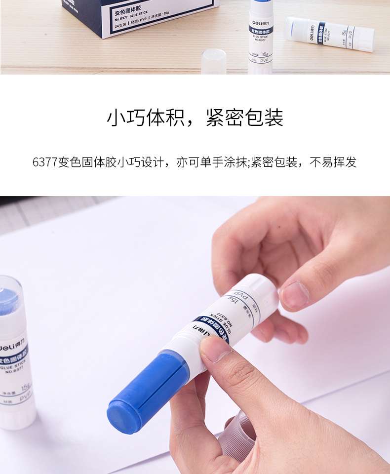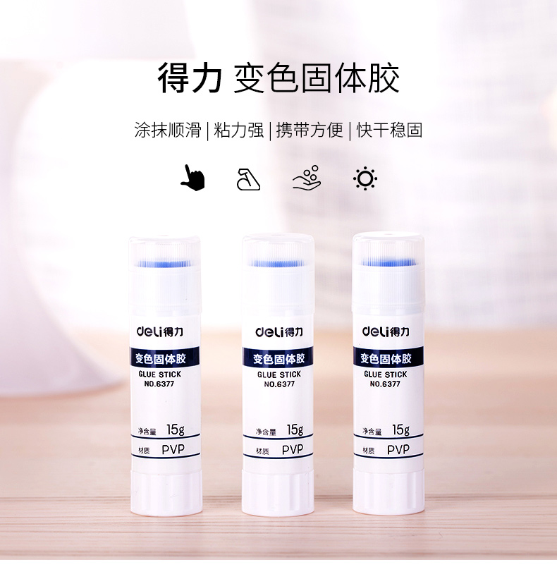 得力文具15g變色固體膠膠棒粘性強兒童手工課膠水辦公用品6377