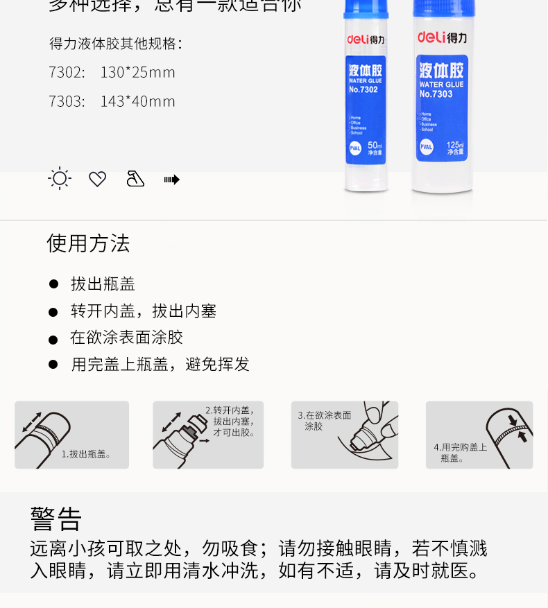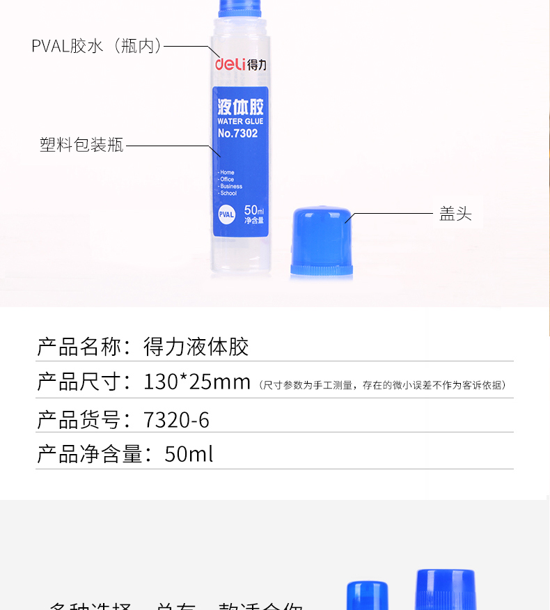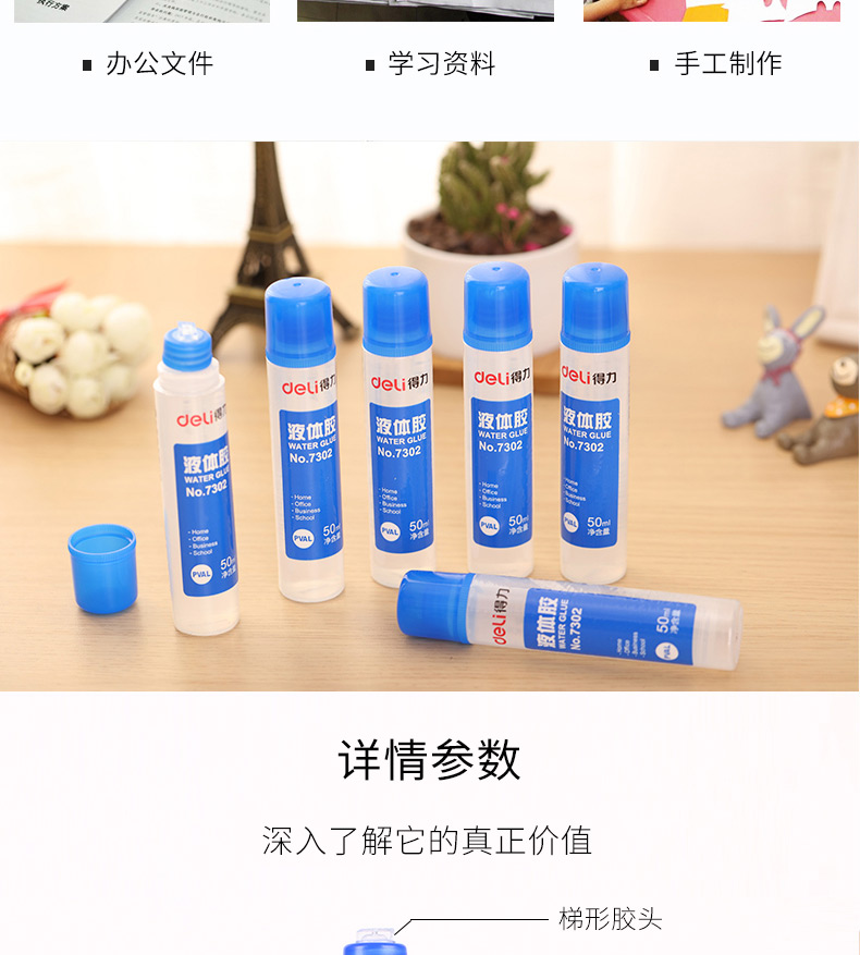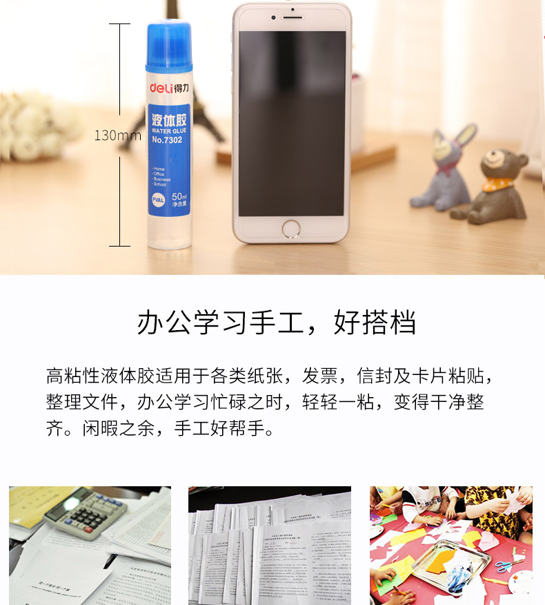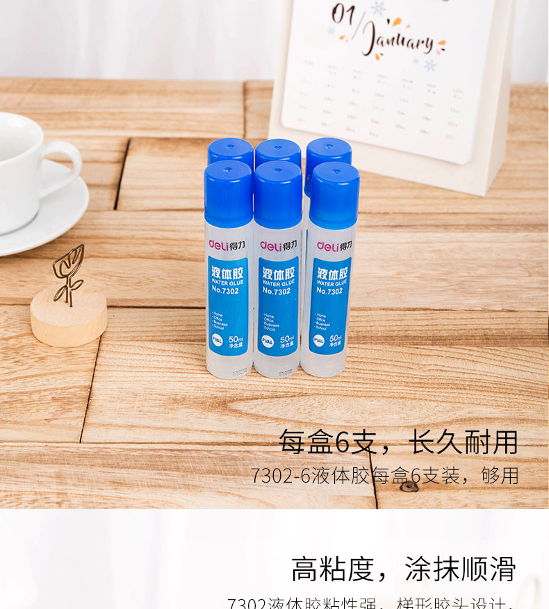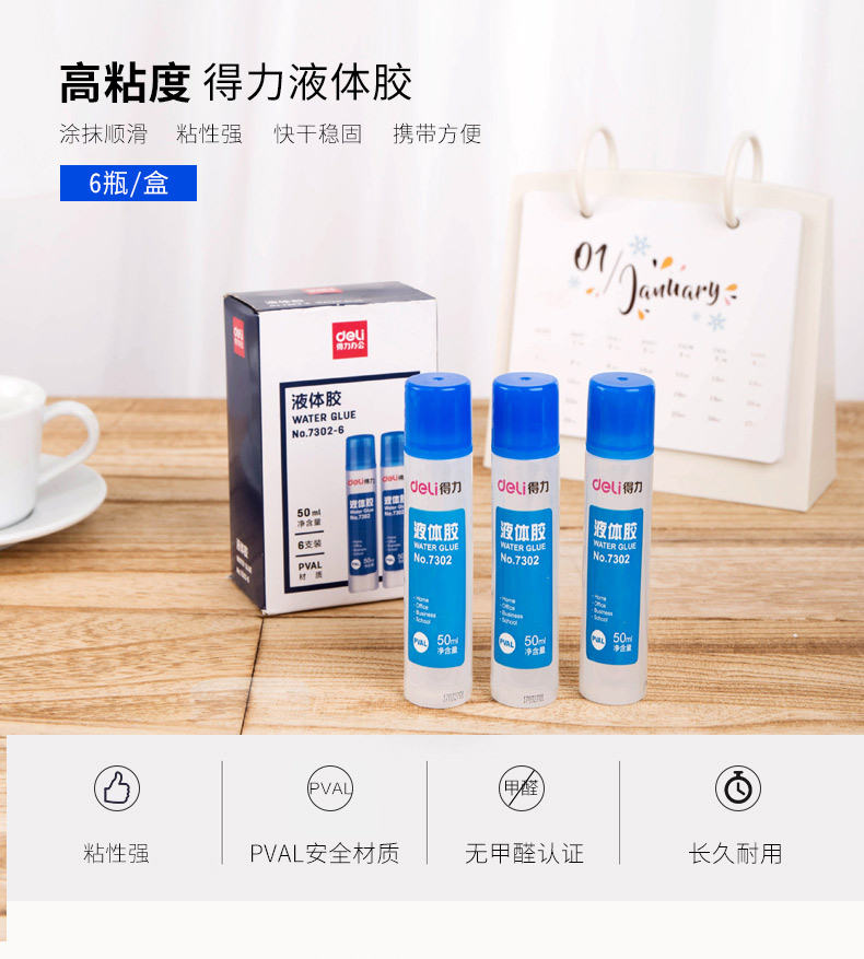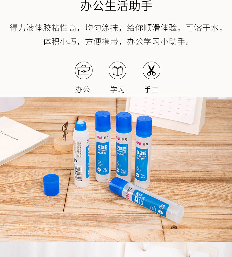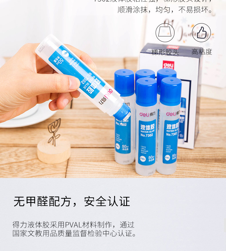 得力7302 液體透明膠水 中號液體膠 50ML液體膠膠棒財務膠水