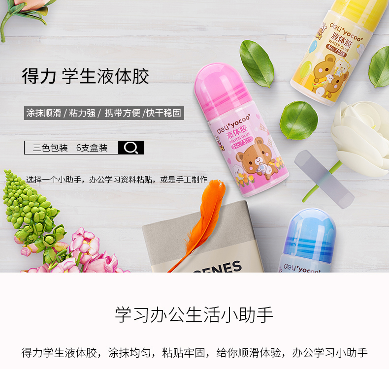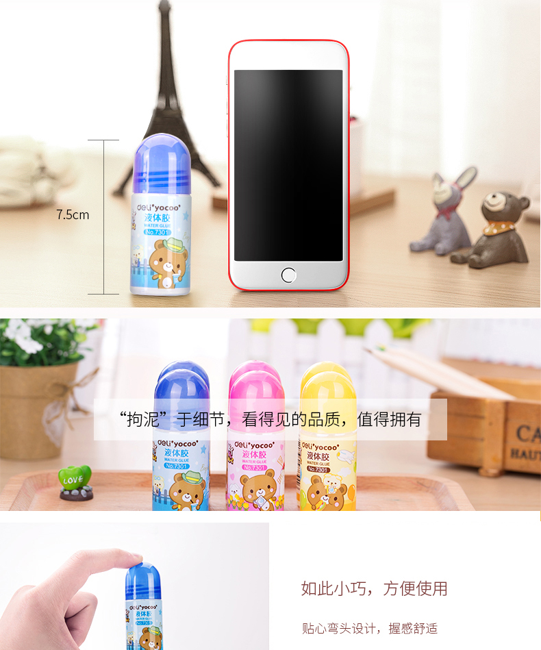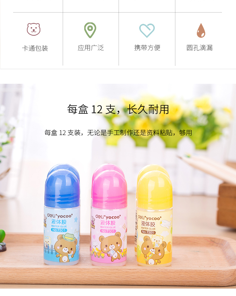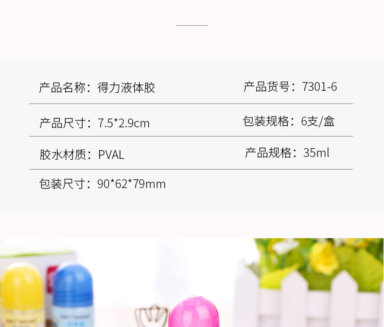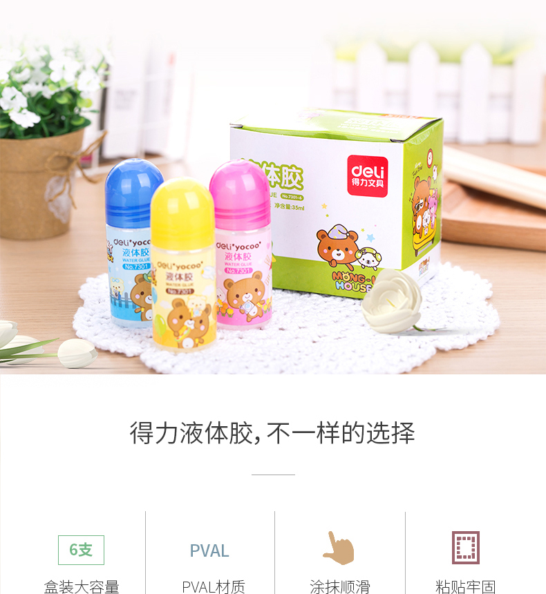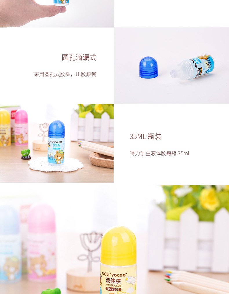 得力7301液體膠學(xué)生手工膠水diy兒童手工課6支裝35ML粘性好