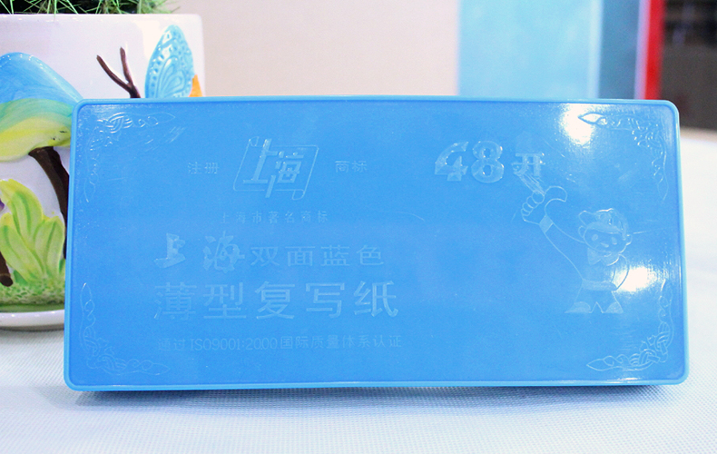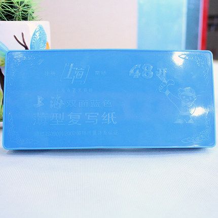 400張塑料盒裝 上海2834薄型藍(lán)印紙48開雙面藍(lán)色復(fù)寫紙8.5X18.5cm