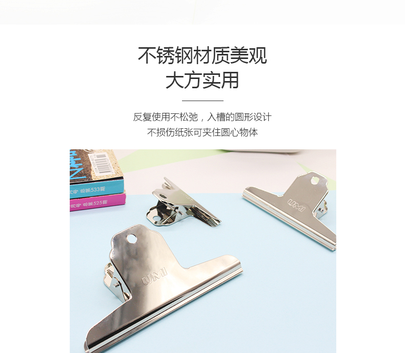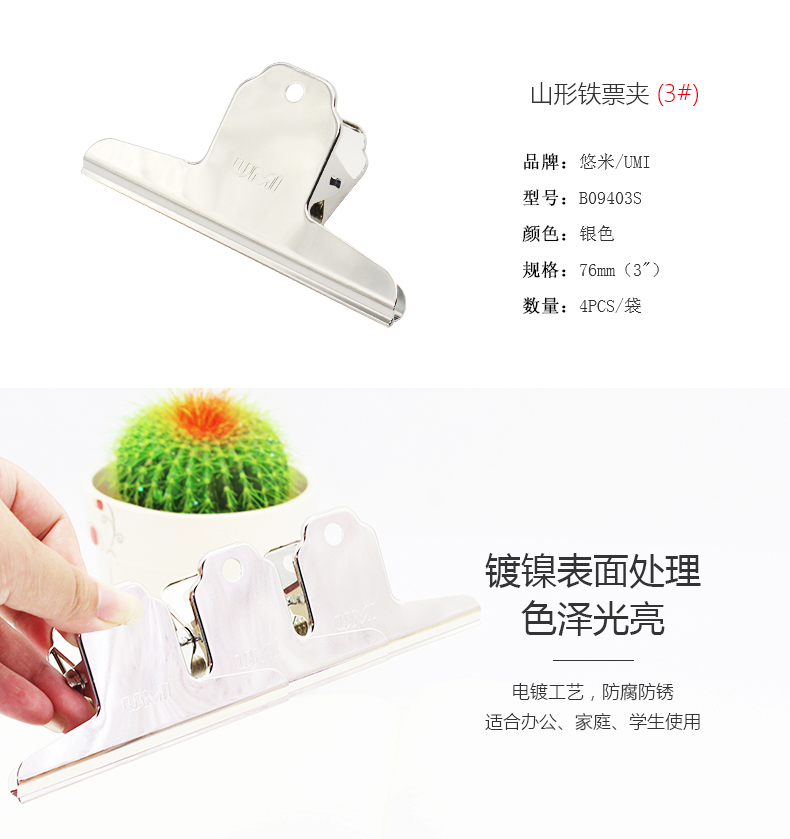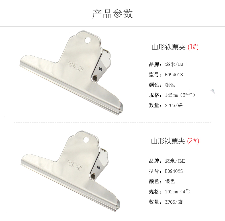 悠米 1# (145mm)山形鐵票夾袋裝銀圓形不銹鋼鐵夾子票據(jù)夾