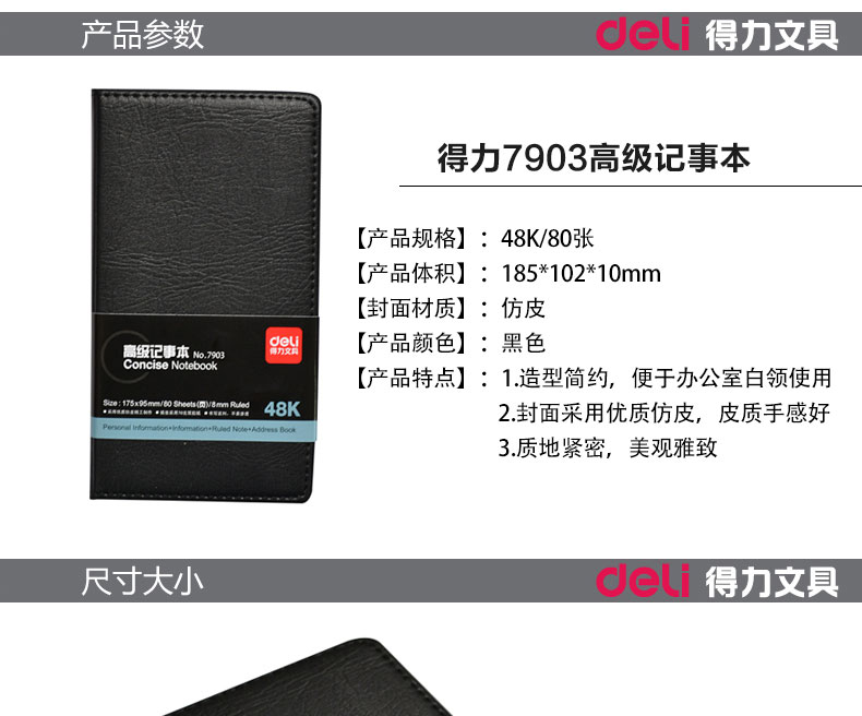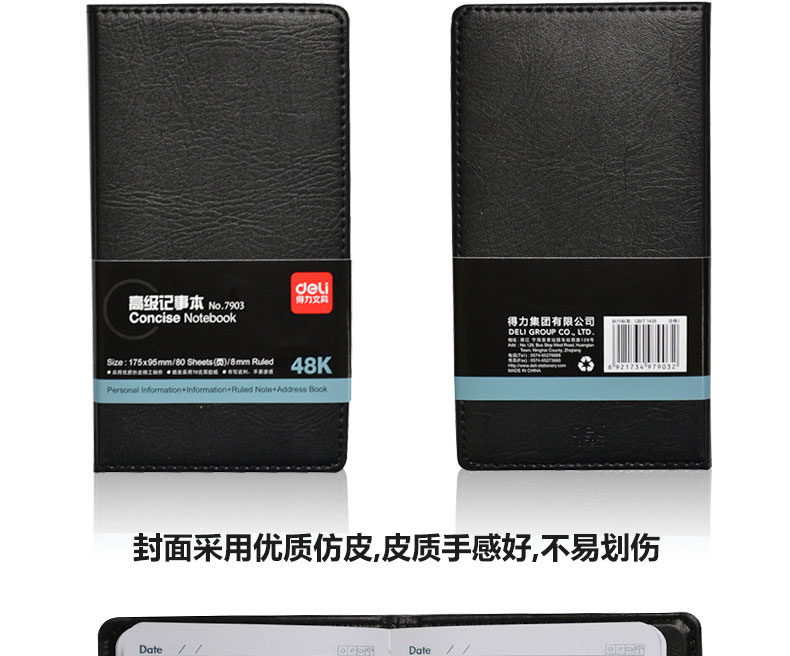 得力7900/7901/7902/7903皮面筆記本 80頁皮面日記記事本 皮面本 皮本