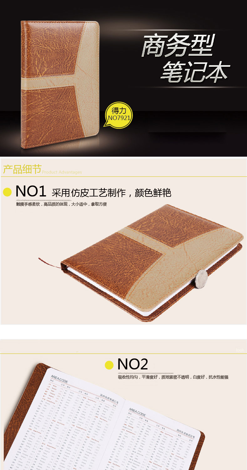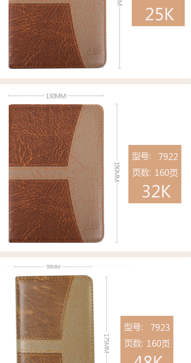 得力皮面記事本日記本商務會議記錄筆記本80頁120頁160頁 皮本