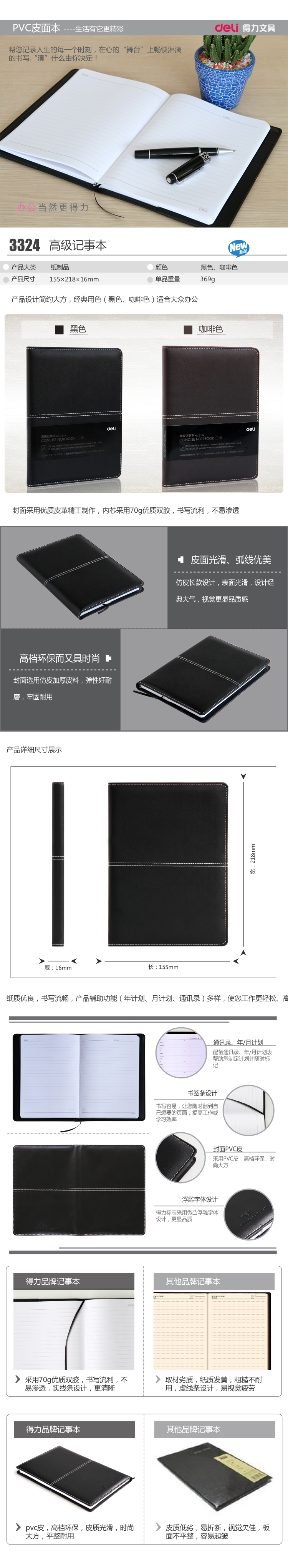 得力3323 3324高級(jí)皮面本18k 25K記事本114張筆記本 辦公商務(wù)優(yōu)質(zhì)皮革 皮本