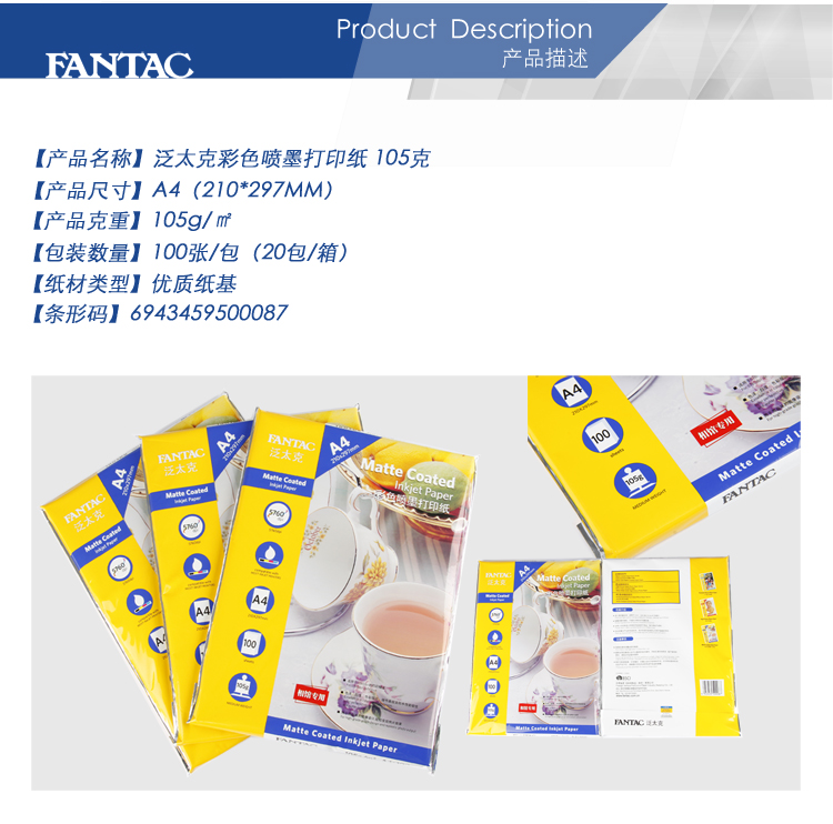 100張泛太克A4 105克彩噴紙彩色噴墨打印用紙作業(yè)紙彩噴紙