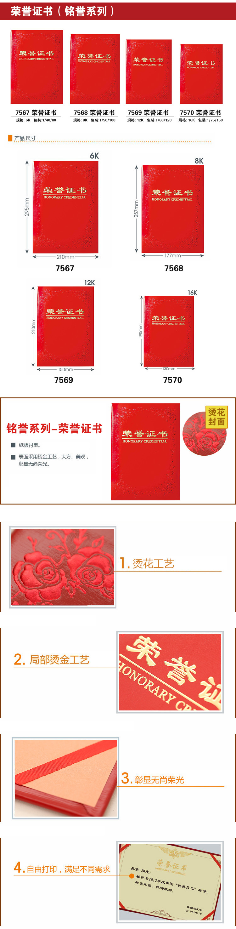 得力榮譽(yù)證書6K 8K 12K 獲獎(jiǎng)證書 7567/7568/7569 內(nèi)芯可打印證書