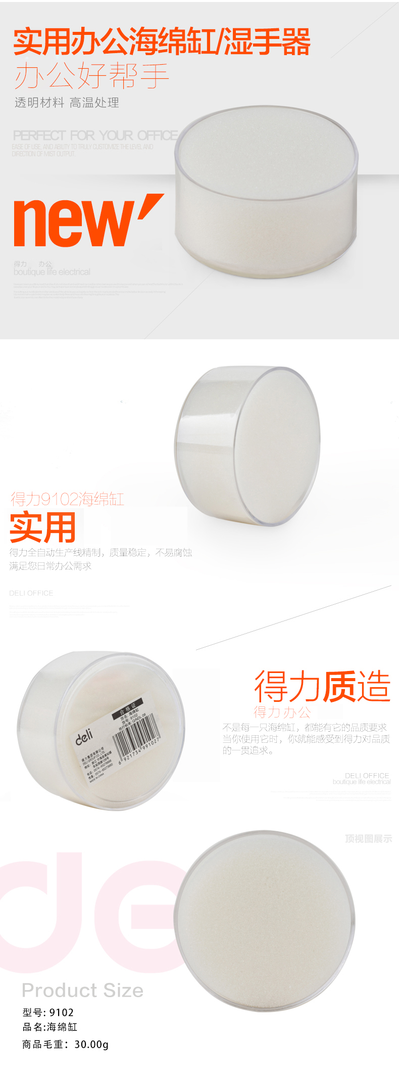 得力海綿缸9102 辦公財務用品 圓形點鈔濕手器 沾水缸 海綿材質