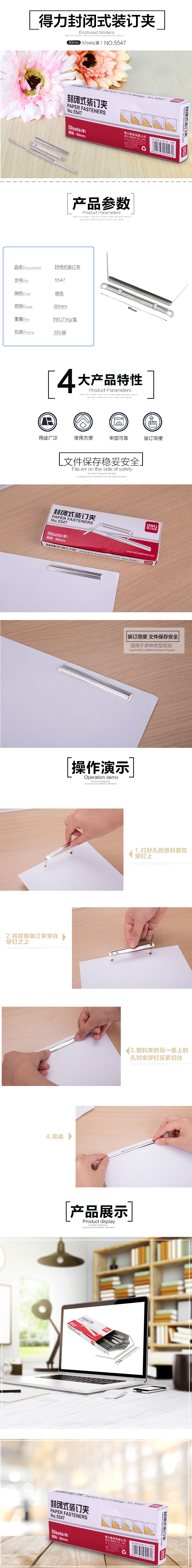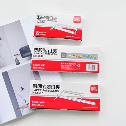 得力五金裝訂夾5547白色鋁合金5549白色鋁合金50套5548彩色塑膠