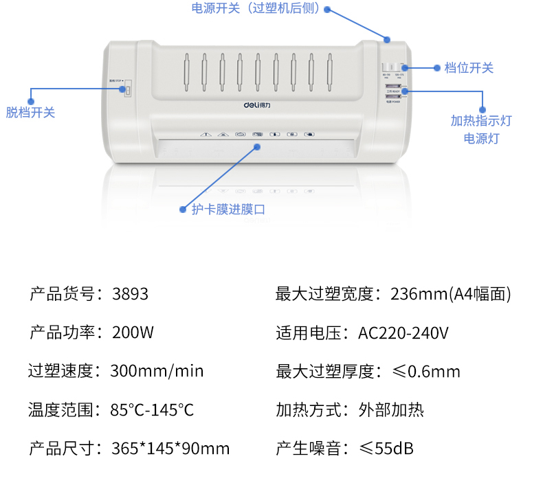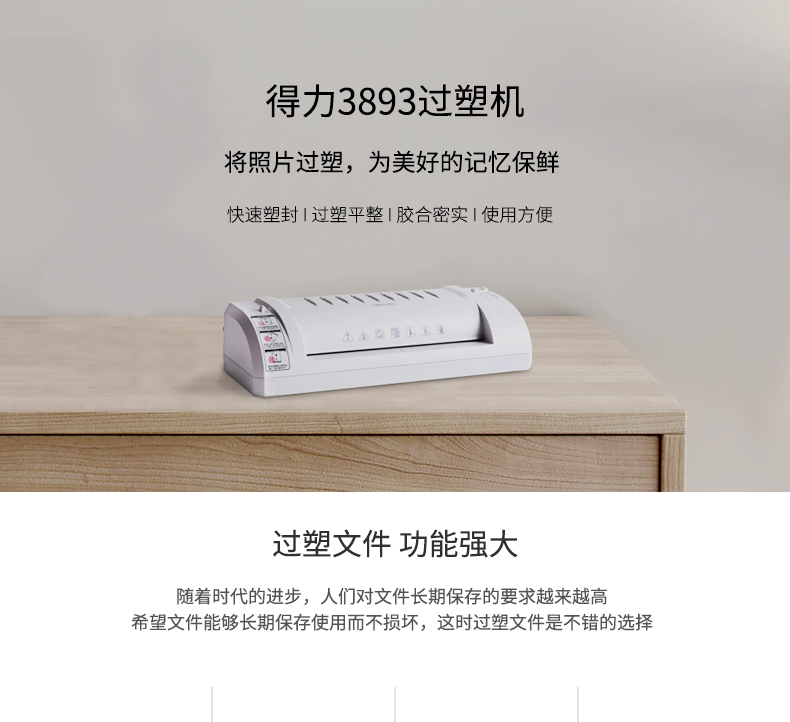 得力3893照片塑封機辦公家用a4過塑機覆膜機相片過膠機過塑機