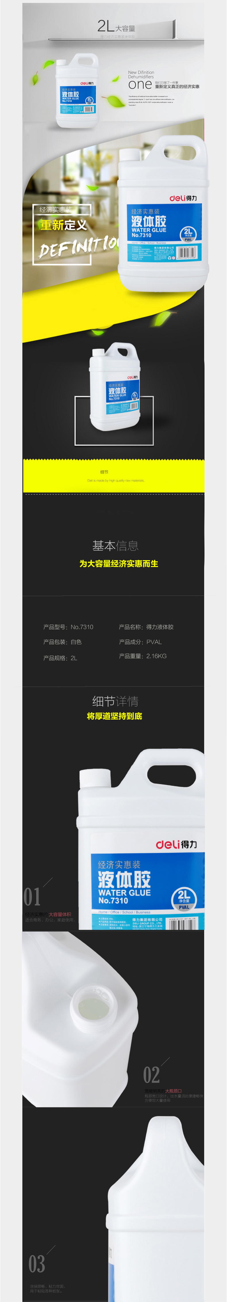 得力液體膠7310 整桶 2L大桶裝膠水 實用/辦公膠水/粘性好 液體膠