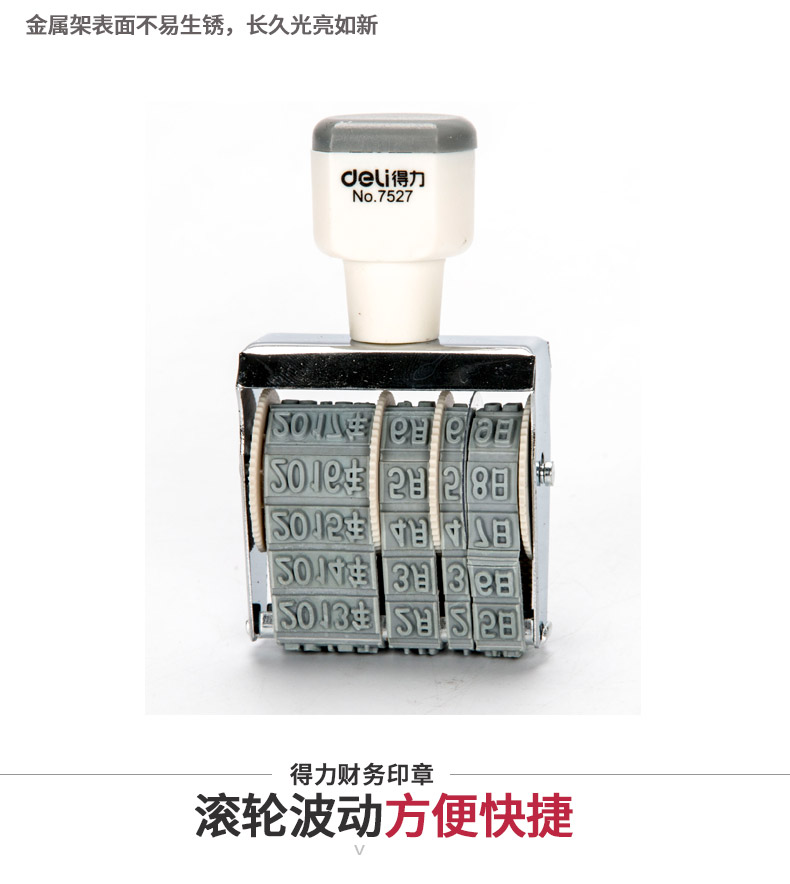 得力7527 轉輪可調節生產日期印章 年月日號碼章 小寫數字帶日期