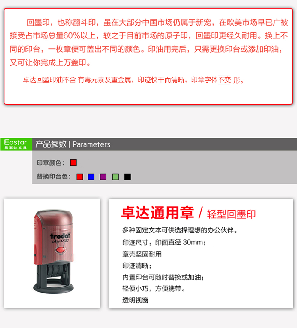 30mm日期印進口卓達46130回墨印章 翻斗印 翻轉印章 可調日期章自動出油
