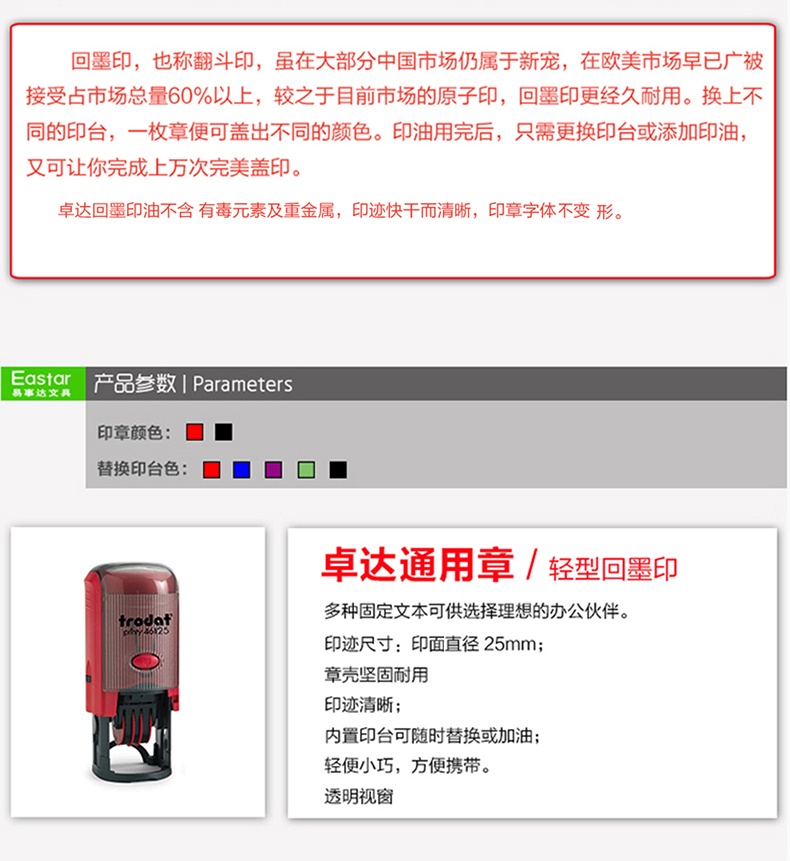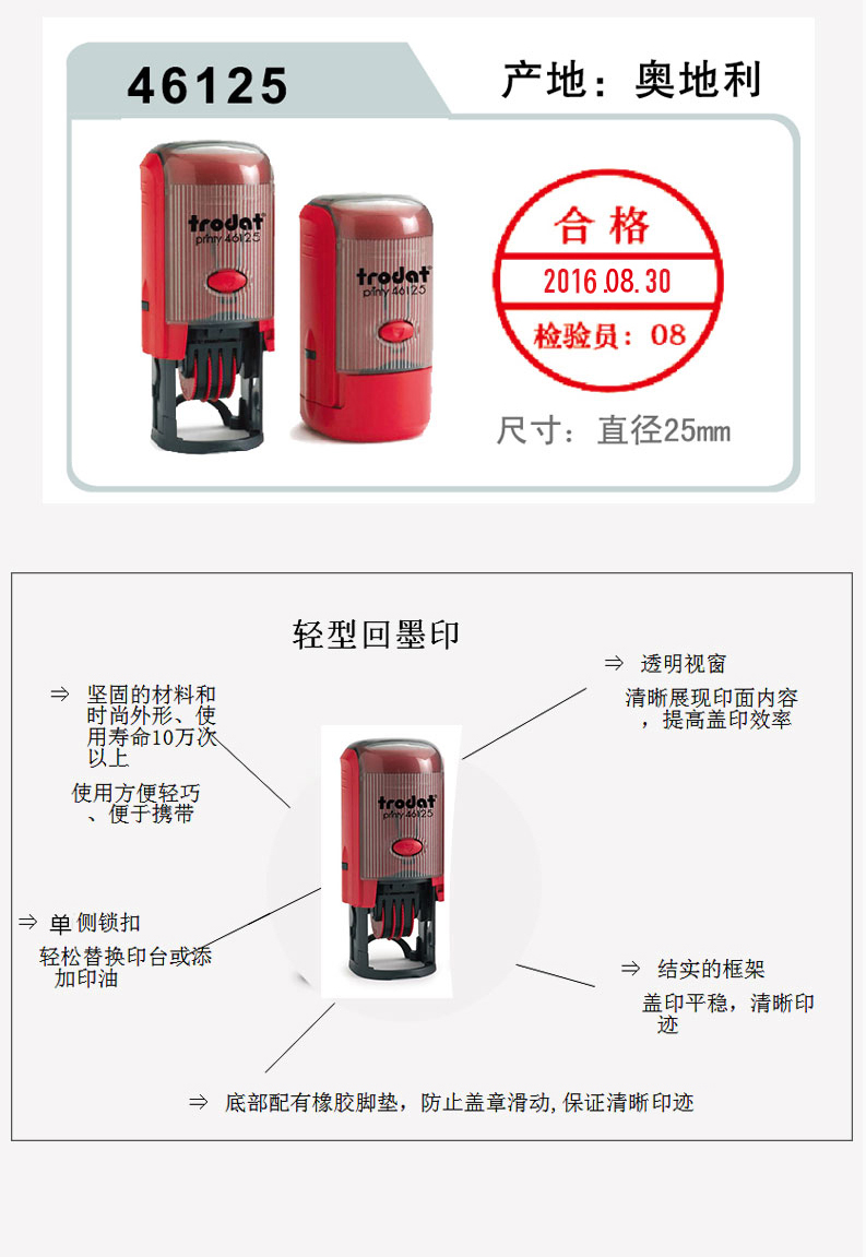 25mm日期印 進口卓達46125回墨印章 翻斗印章 可調日期章 自動出油章