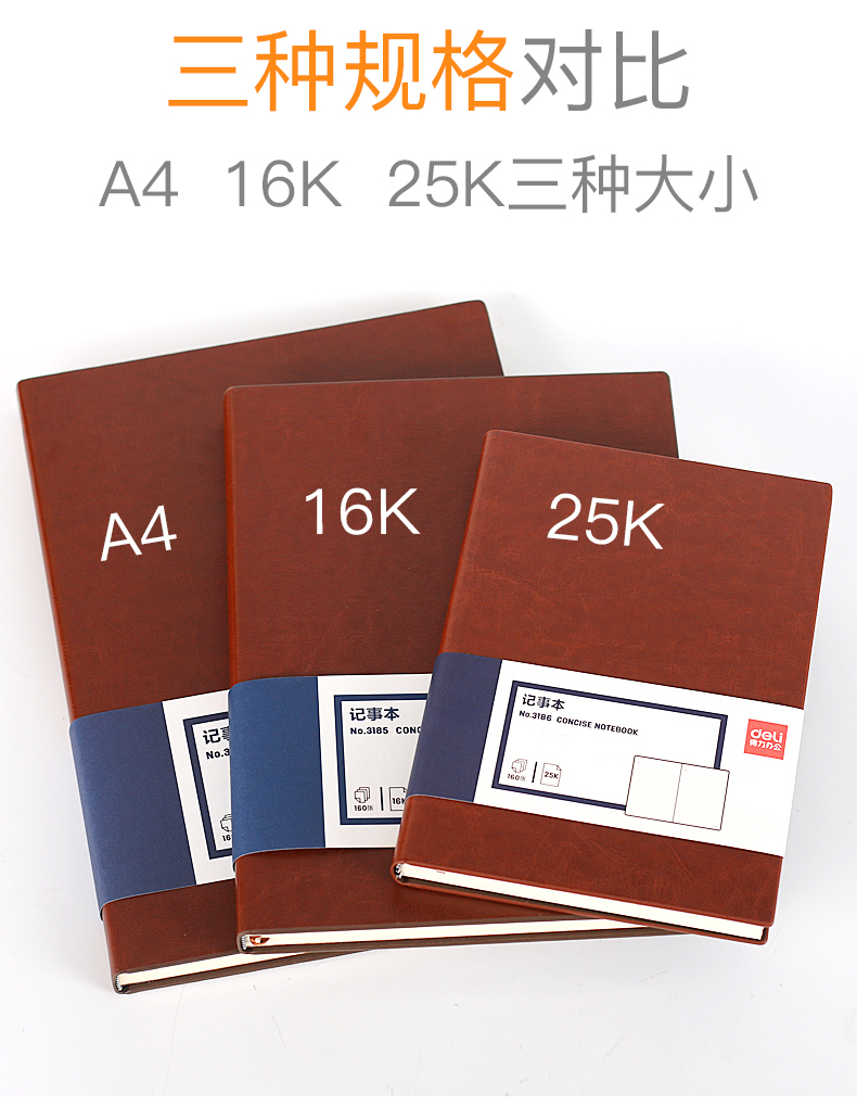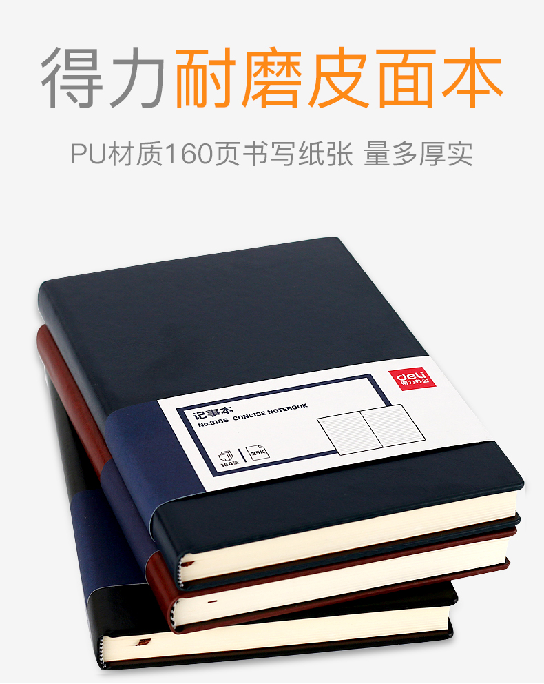 得力筆記本160頁 皮面商務記事本 a4大號本子 加厚辦公用品 3185 3186 3306皮面本 皮本
