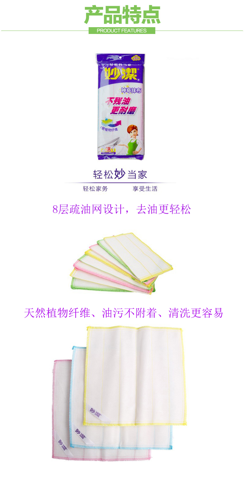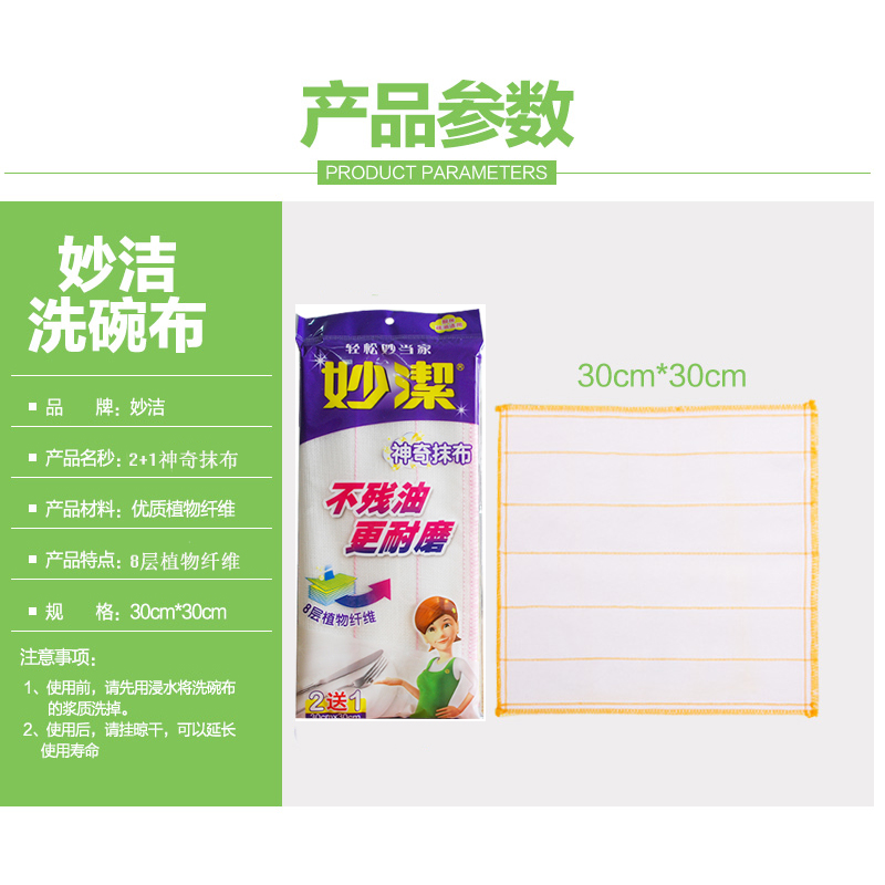 妙潔神奇抹布8層植物纖維加厚3片廚房洗碗布清潔巾柔軟吸水不掉毛MTC3