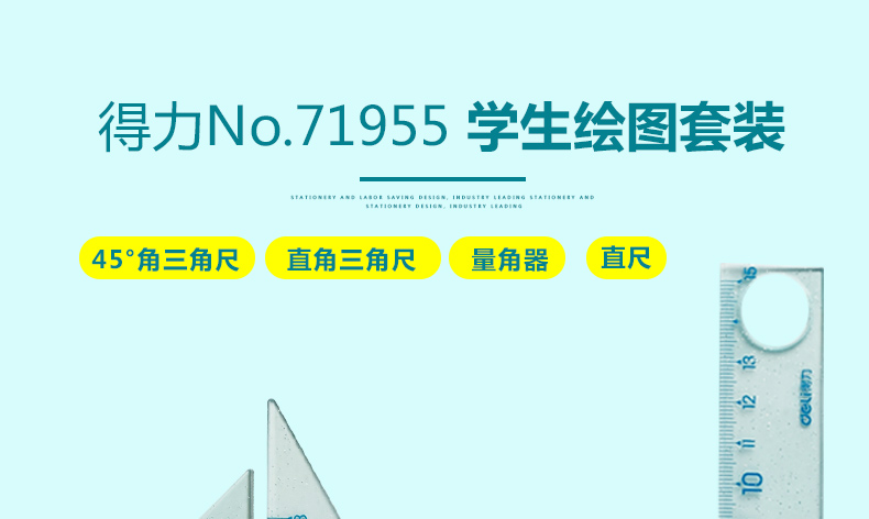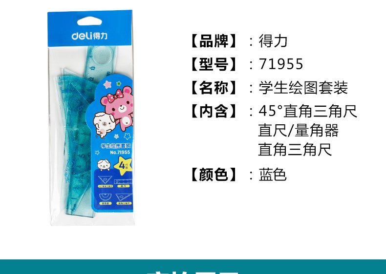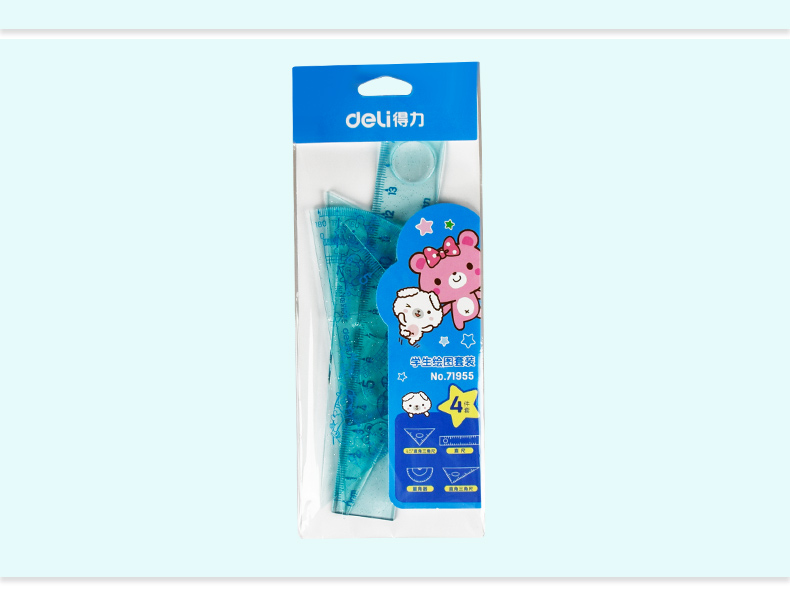 得力71955學(xué)生繪圖多功能組合 直尺+三角尺+量角器 學(xué)生4件套 開學(xué)