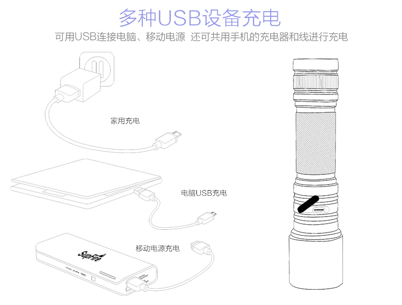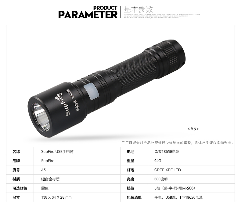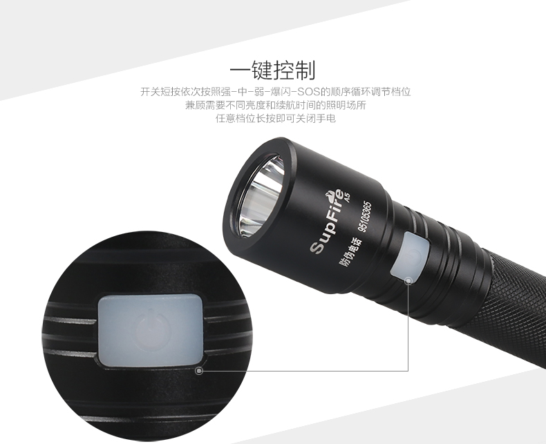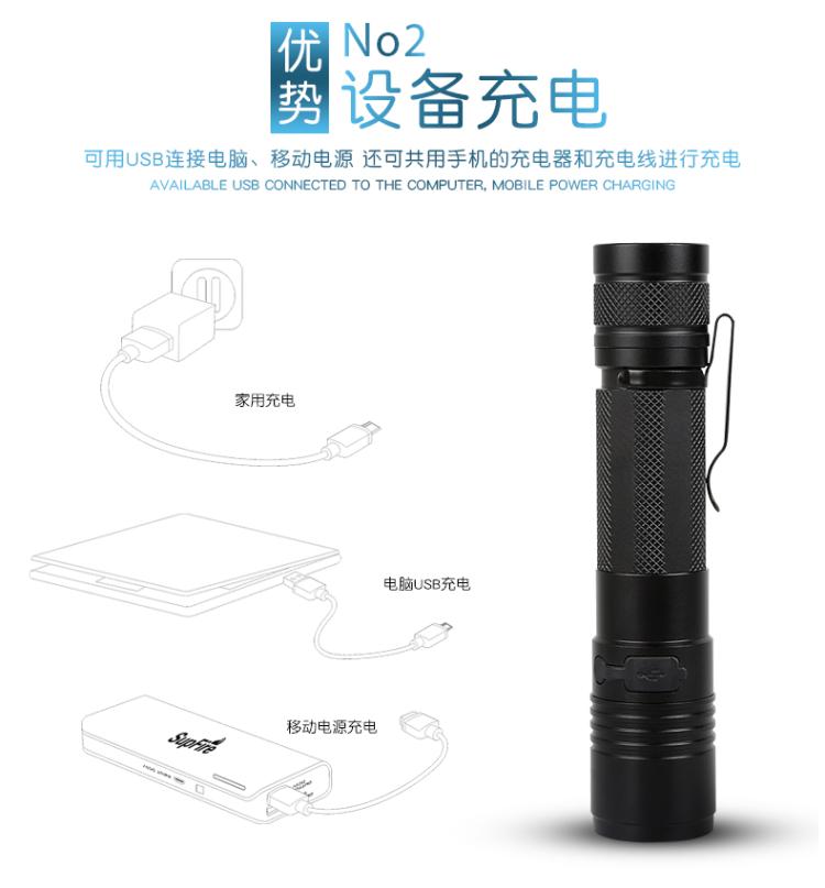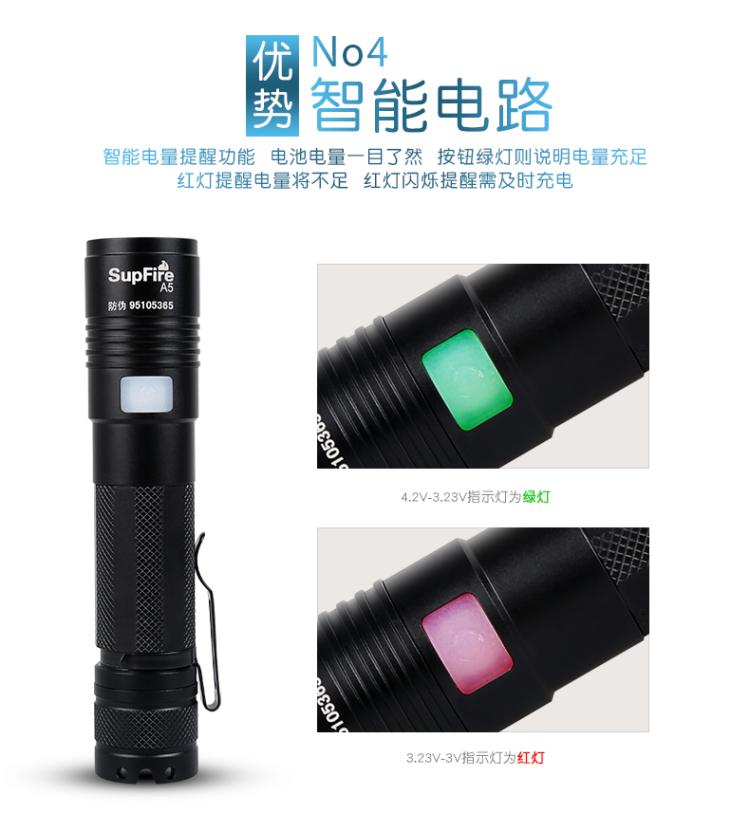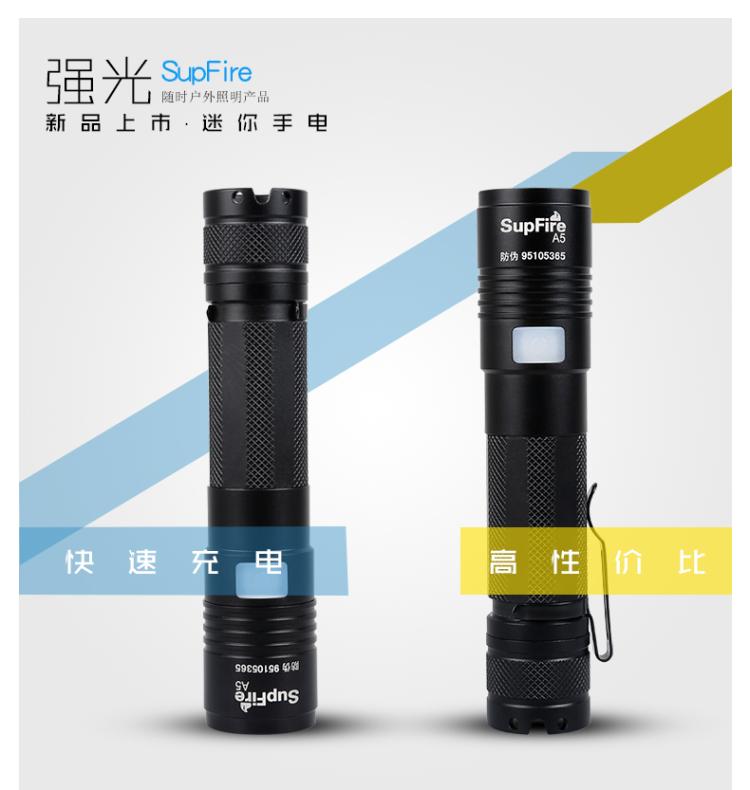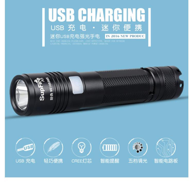 SupFire神火USB充電小型迷你強光手電筒A5便攜式led超亮打獵