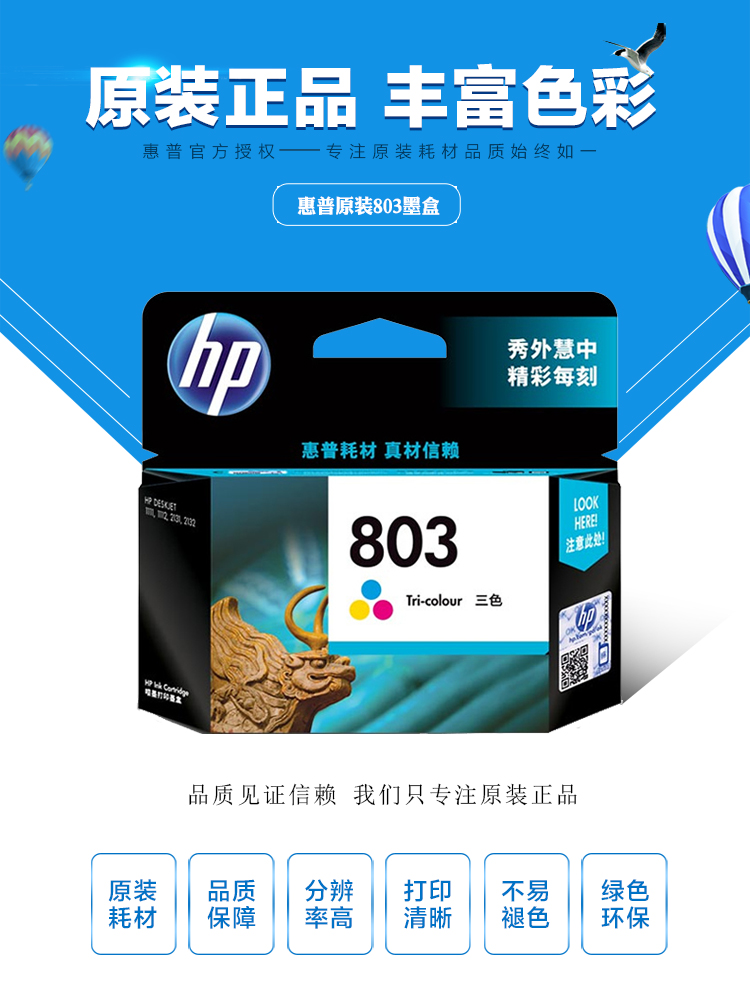 HP惠普803墨盒黑色 803彩色1111 1112 2131 2132 噴墨打印機墨盒dyhc