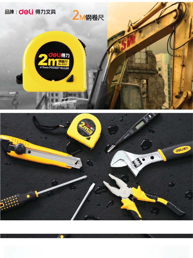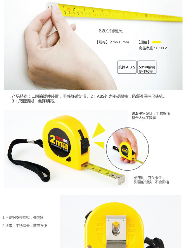 得力鋼卷尺8201/8202/8203/8211/8210抗摔外殼尺子 測量工具魯班木工尺