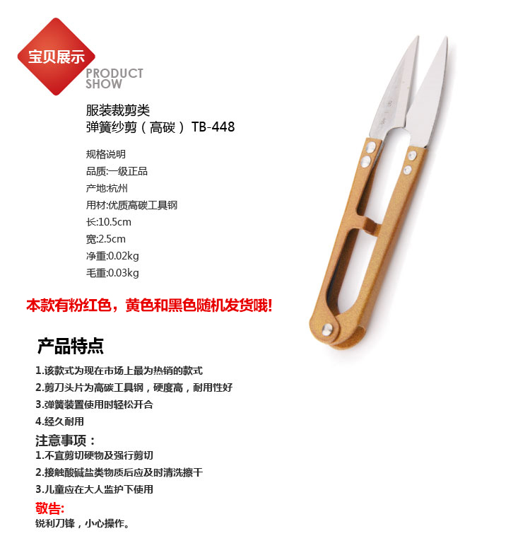 紗剪 彈簧小剪刀 十字繡U型防銹線頭剪 小剪刀