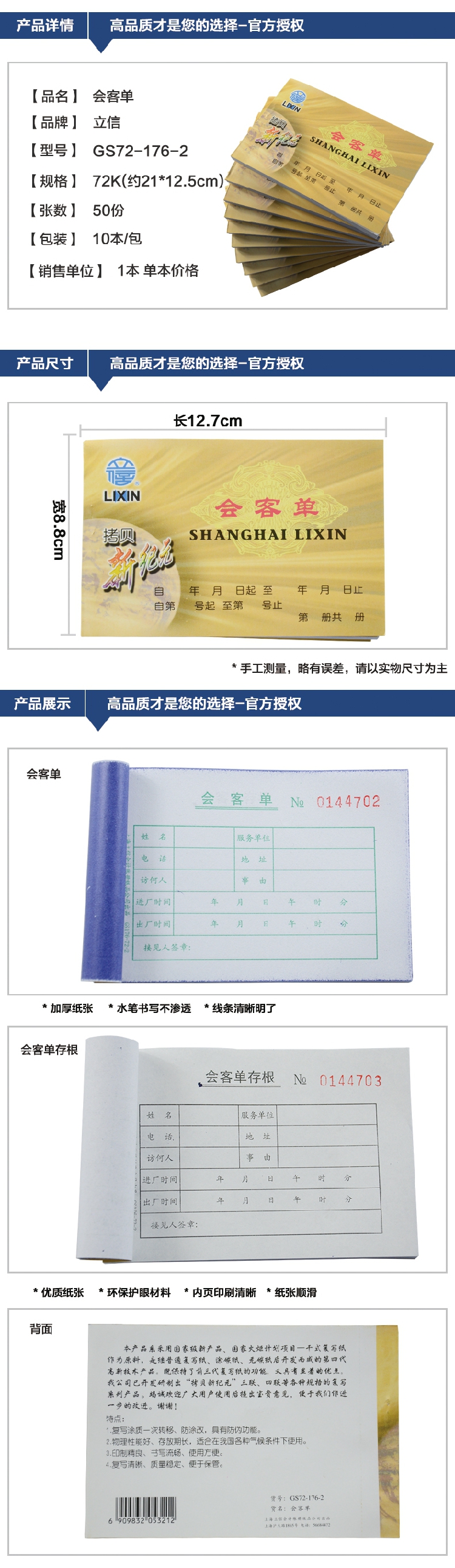 立信會客單 立信GS176-72-2拷貝無碳復寫會客單 公司會客單