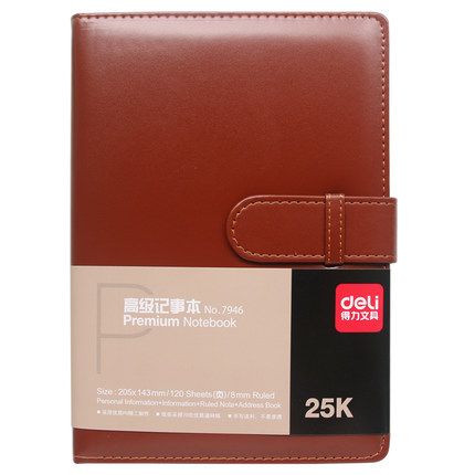 得力7946皮面筆記本/記事本/25k 會議本 120頁 皮本