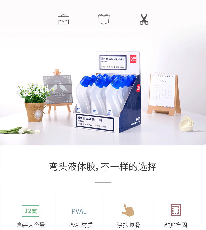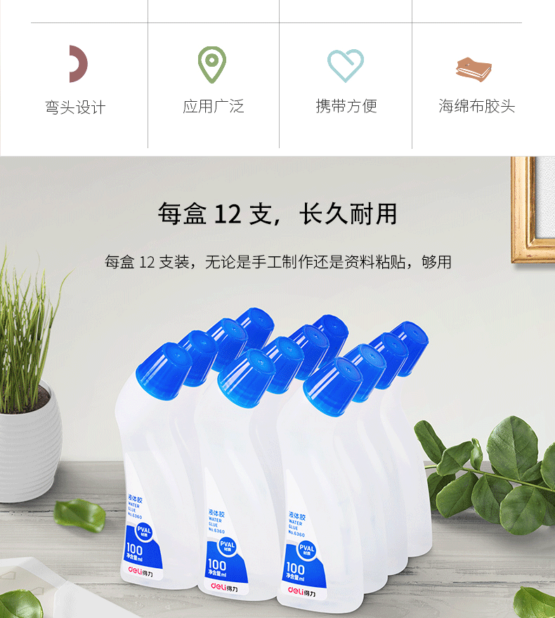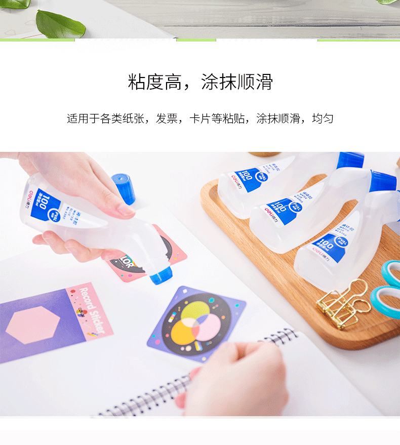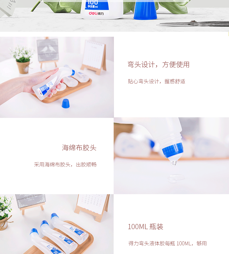 新品 100ml得力6360膠水辦公彎頭液體透明膠學生財務用品強力膠快干膠