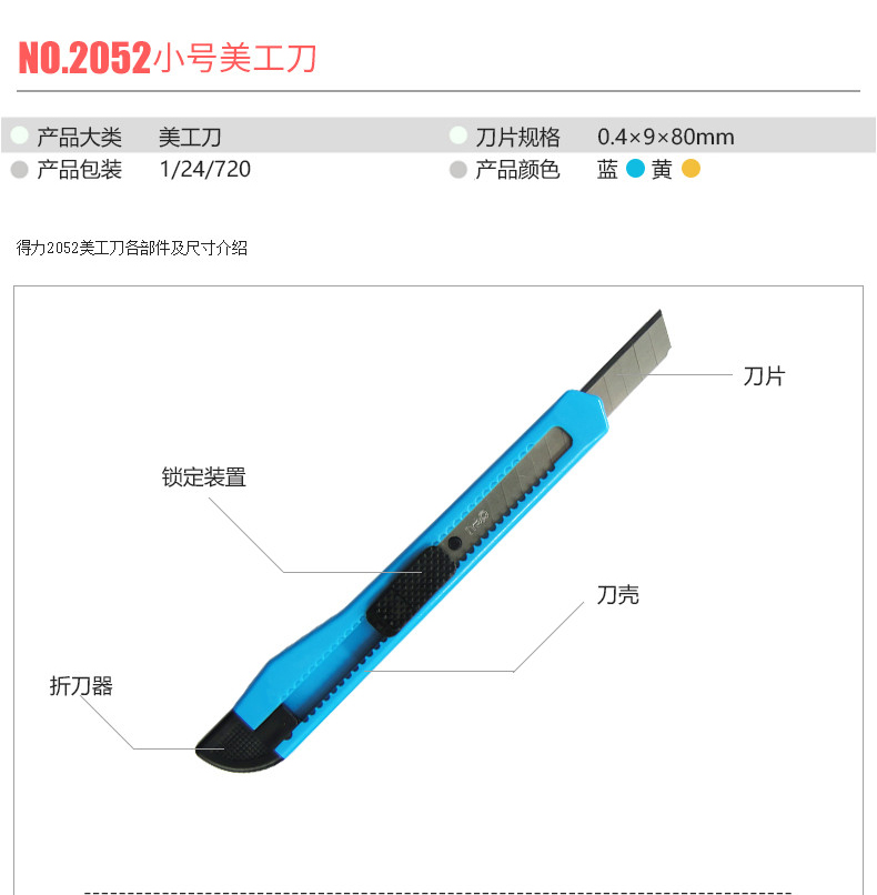 得力美工刀2052 美工刀小號(hào)裁紙刀手工刀 小刀 小號(hào)美工刀
