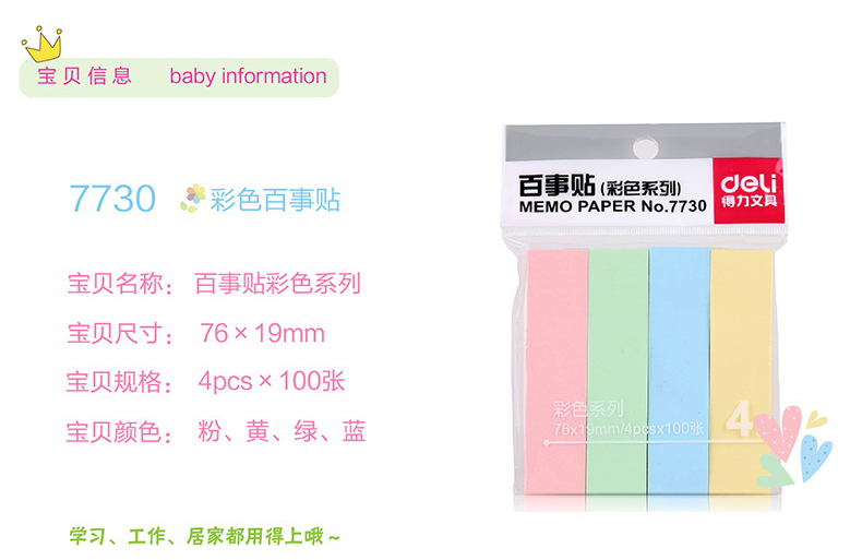 得力彩色便利貼 得力 7730 四色 百事貼 萬事貼 告示貼 N次貼