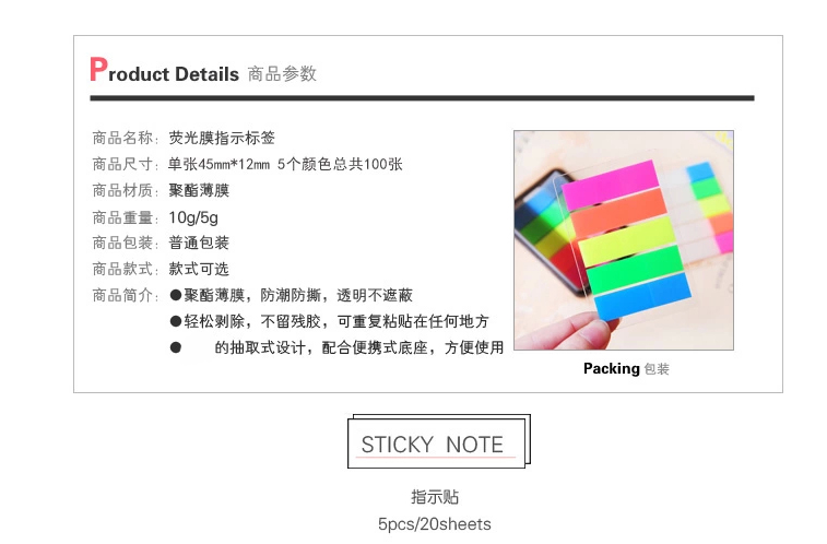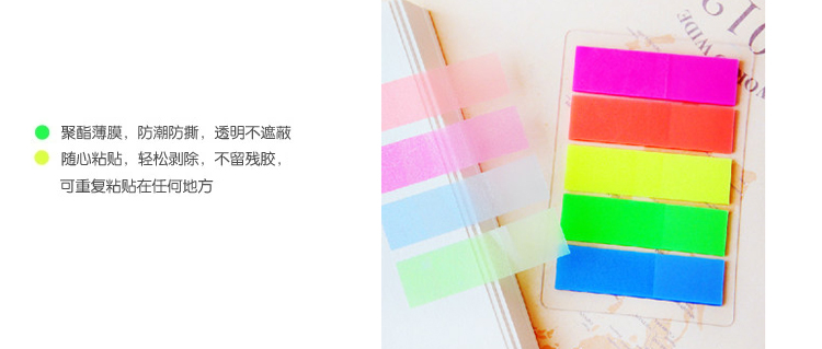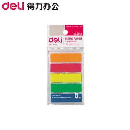百事貼得力9063熒光膜指示標(biāo)簽 5條全色分類貼便利帖熒光貼紙標(biāo)簽