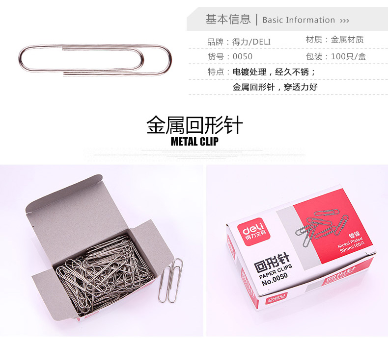 加長得力大號回形針0050加厚50mm 5cm鍍鎳辦公回型針曲別針100枚