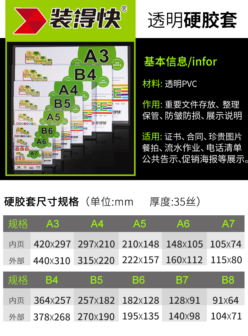 裝得快JX807 A7 硬膠套 硬卡套 證件套PVC 資料 文件保護套卡片套