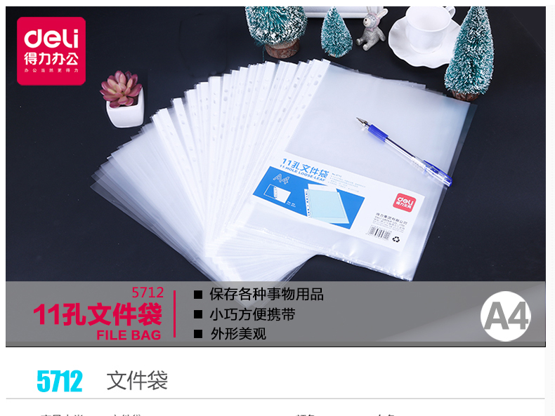 得力5712(透明)11孔資料袋(備用袋) 100個 11孔文件袋