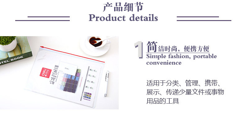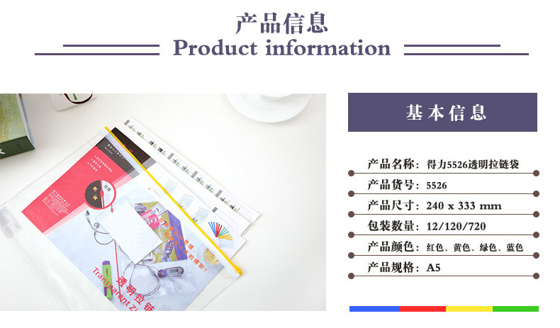 得力5526(混)透明拉鏈袋A4 文件袋 拉邊袋