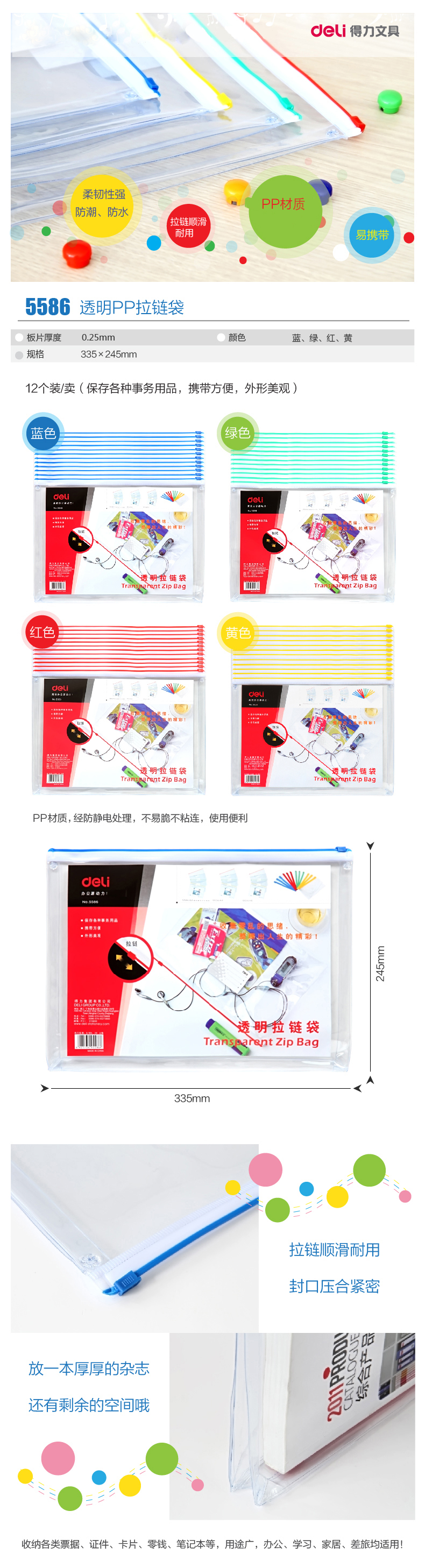 得力5586拉鏈袋加厚立體文件袋A4拉邊袋加寬防水大容量資料袋