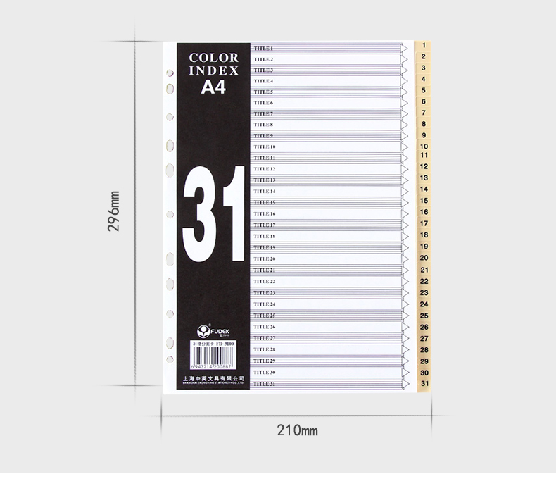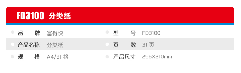 富得快31頁 FD3100塑料分類紙分頁紙分類卡 索引紙 隔頁紙分類