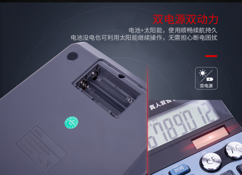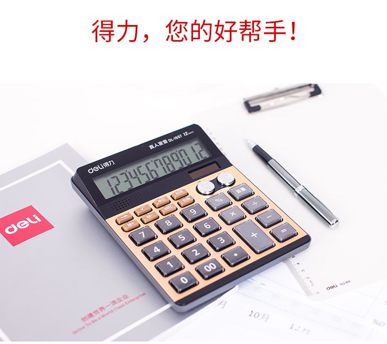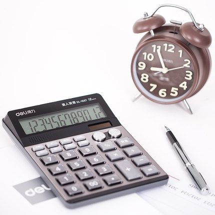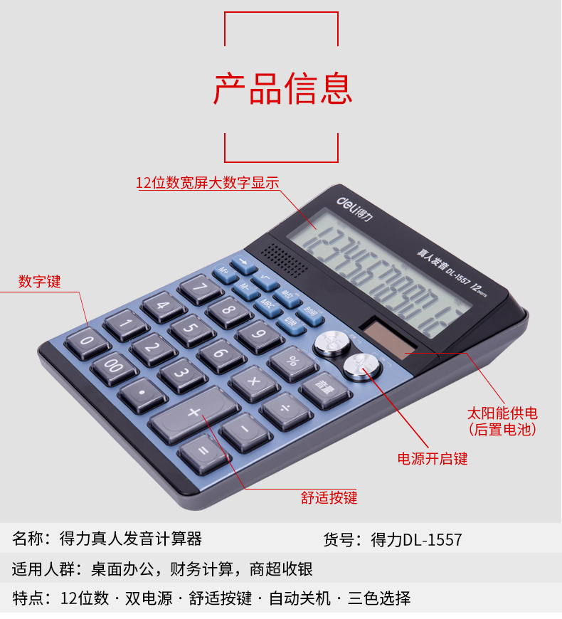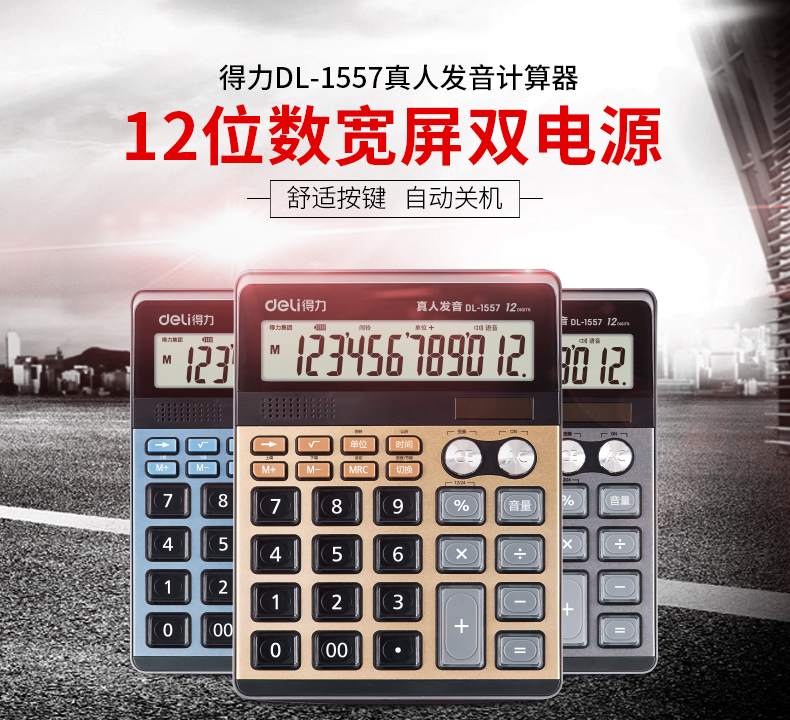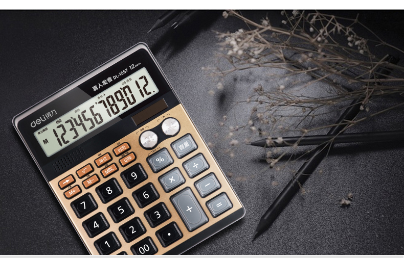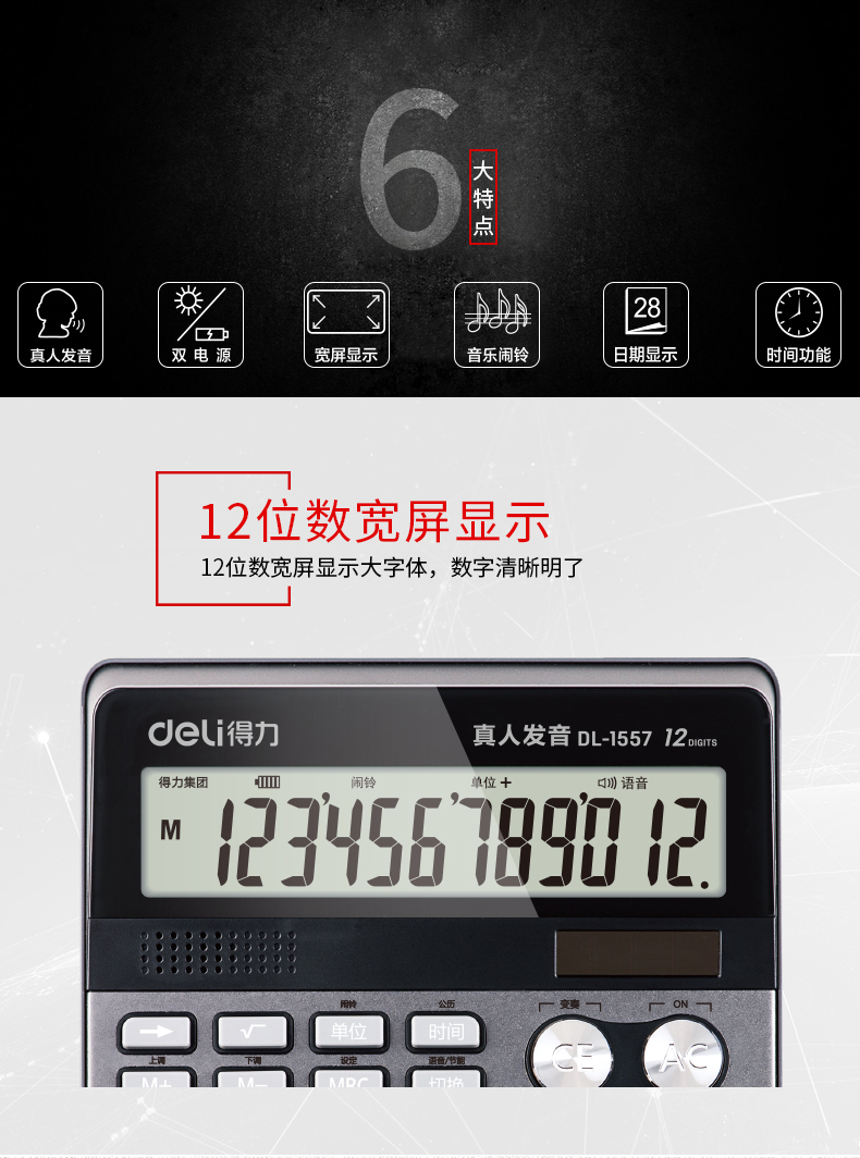 得力1557商務辦公計算器雙電源財務會計語音計算機12位大屏多功能