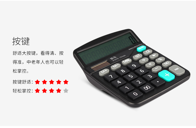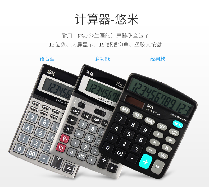悠米 B21002S計算機大屏語音真人大按鍵財務專用太陽能12位計算器便捷