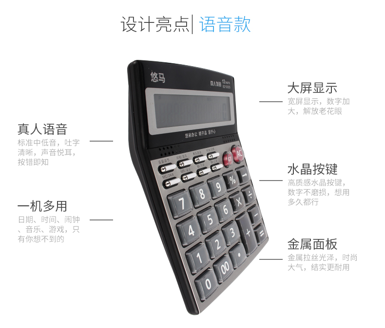 悠米B21003S計算機大屏語音真人大按鍵財務專用太陽能12位計算器便捷