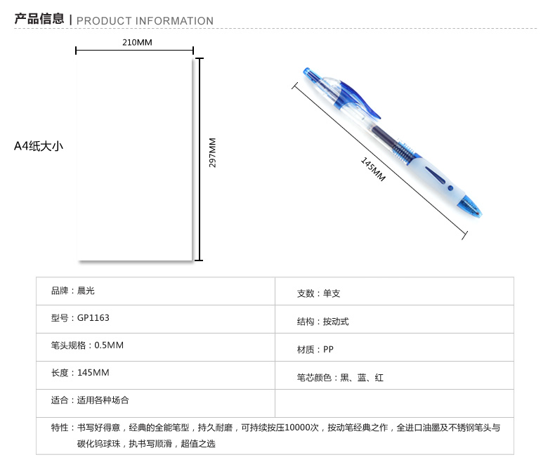 晨光按動筆 晨光GP1163 0.5mm中性筆芯 按鍵式簽字筆 開學